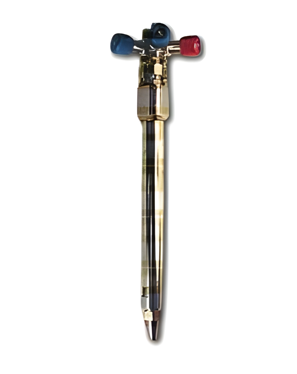 Краток Опис: Прецизен горелник за сечење и заварување, со копчиња за регулирање на протокот на гас, месинг конектори и издржлива рачка.